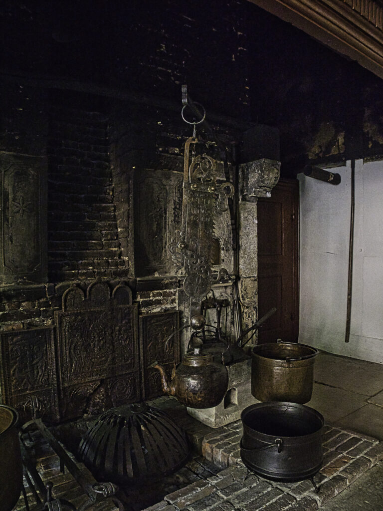 Der Kessel mit dem Essen, meistens Eintopf, wurde an einem Eisen eingehakt, dass wie eine Säge gezackt war. Wenn es schnell gehen sollte, wurde der Topf ein paar Zähne tiefer gehängt. Noch heute sagt man: „Leg doch mal einen Zahn zu!“
