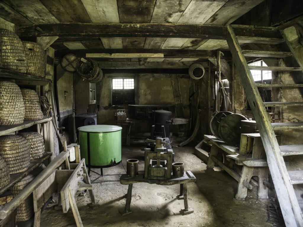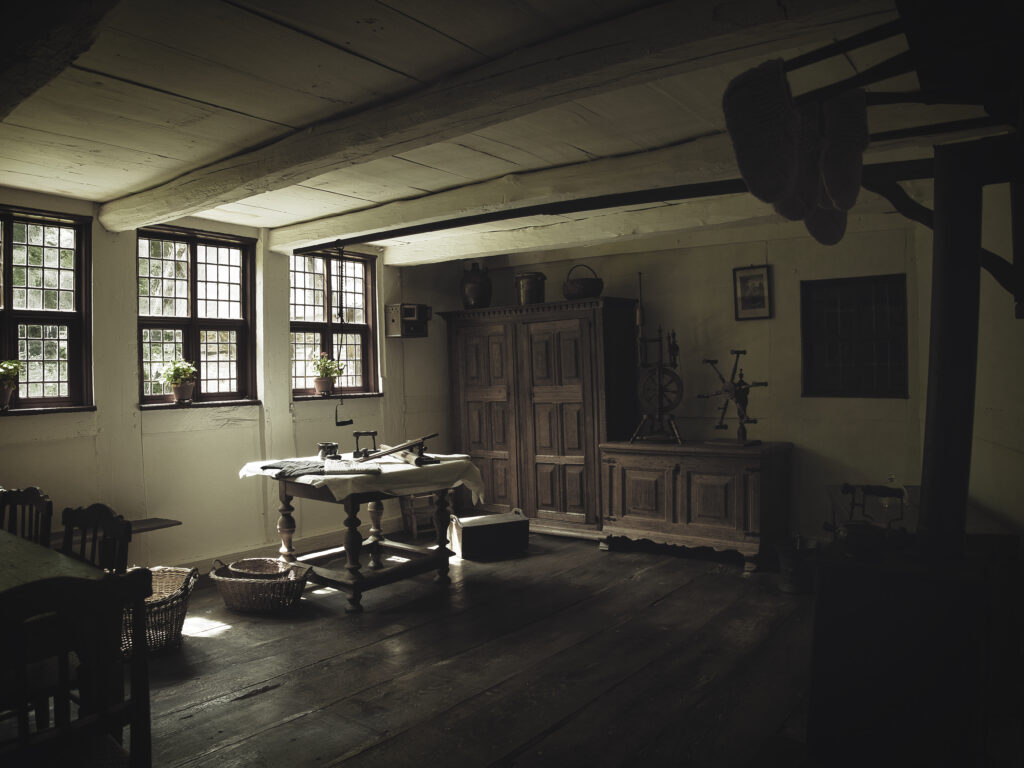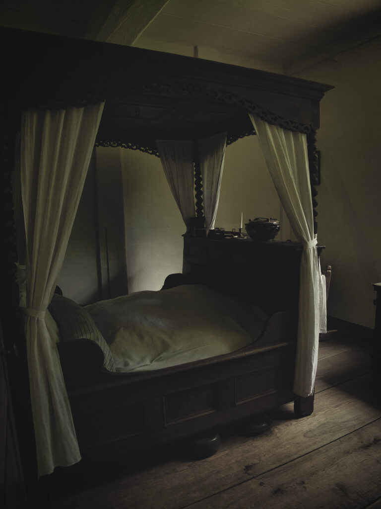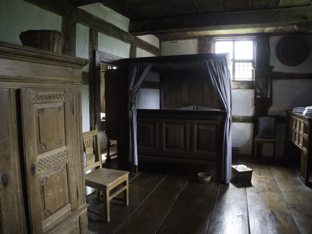 Die meisten Menschen schliefen früher zusammen in einem großen Raum um die Feuerstelle herum. Nur reiche Bauern und Adelige konnten sich ein Bett in einem Schlafgemach leisten. Im Winter ließ man sich eine Pfanne aus Kupfer mit heißem Wasser oder glühenden Kohlen gefüllt und ins kalte Bett gelegt. Aber Achtung: Verbrennungsgefahr!